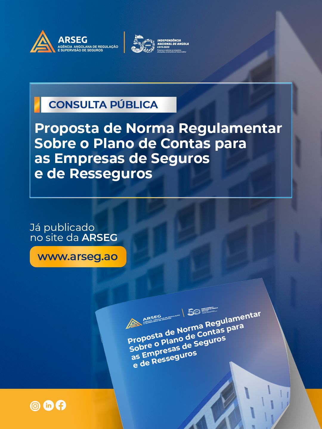 25/09/2025Já se encontra disponível o relatório de actividade e contas da ARSEG, referente ao exercício de 2024. Para mais informações, clique aqui… “ARSEG - Supervisão Credível, Protecção Garantida, Angola Segura“ AGÊNCIA ANGOLANA DE REGULAÇÃO E SUPERVIS...